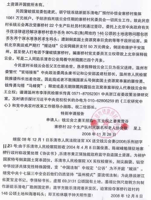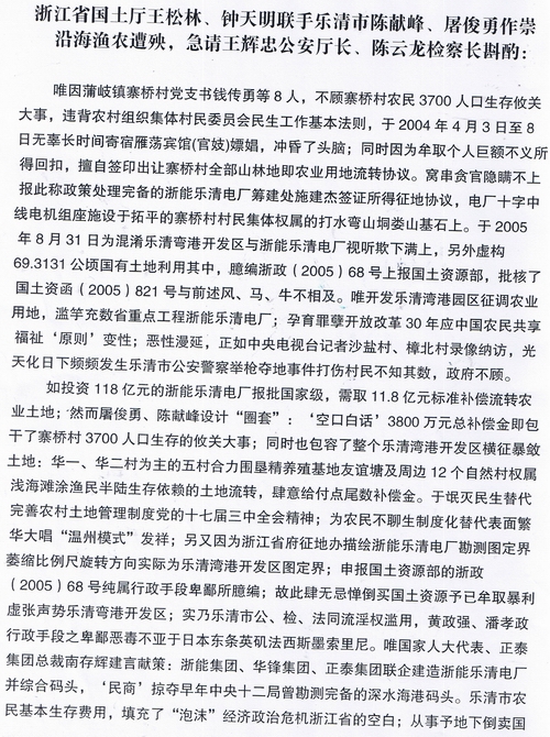 浙江:原省国土厅长王松林、执法监察局钟天明联手迫害沿海渔农
