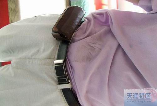 中国青年报记者洪克非在湖南凤凰采访时腰部被踢后留下的鞋印