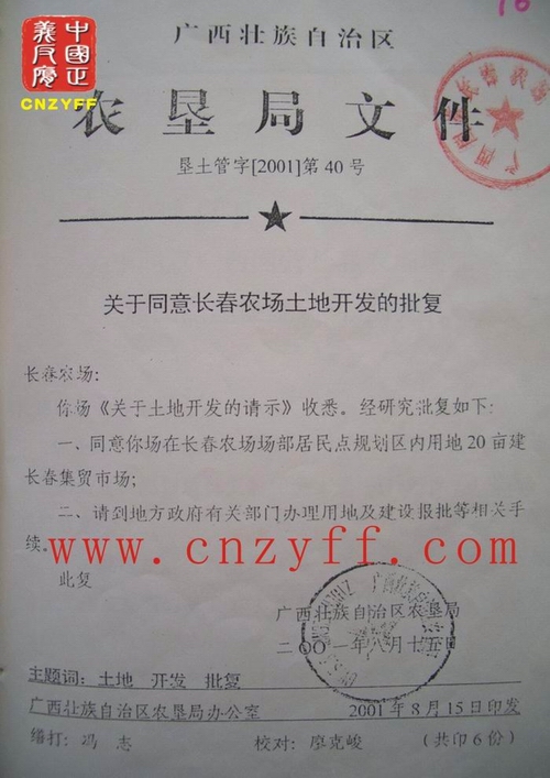 随后,记者在该工作人员提供的材料中发现,广西壮族自治区农垦局垦土管字[2001]第40号文件显示,只批复广西国营长春农场用地20亩。