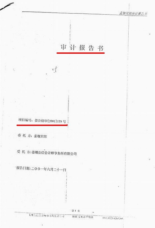 审计报告书 编号:姜公信审[2001]179号