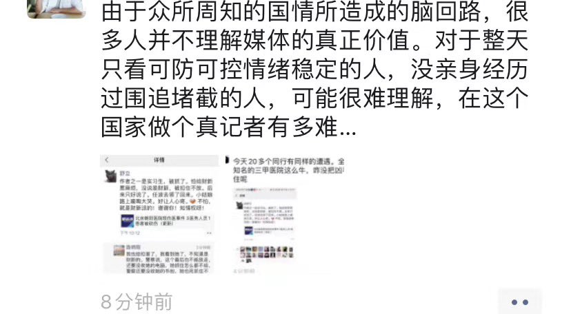 消息人士称,院方说保卫处同意接受采访,回复大家,把记者都诓了进去,结果里面都是警察,去了就出不来了,抓了一堆记者。甚至央视一套的也被抓。