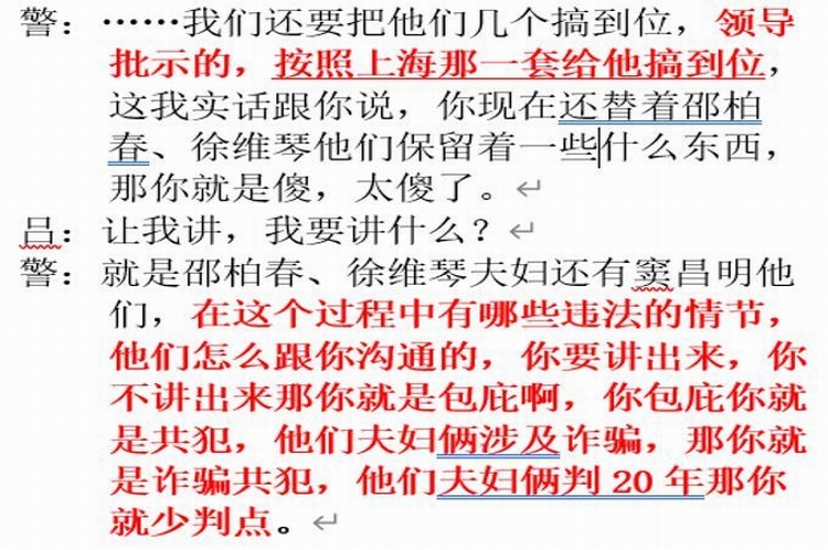 有点遗憾,因时间有限,加上我们不是需要对全案负责的邵柏春夫妇的辩护人,一审判决也没有认定吕先三律师被指控的参加黑社会性质组织犯罪,我们只看了检察机关移送法庭的部分与吕先三律师被一审判决认定的诈骗罪有关的犯罪嫌疑人的在卷审讯录像,对与吕先三的“犯罪”无关的其他同案犯罪嫌疑人的审讯录像,暂时还没有看,估计也没有时间看了。如果检察机关把与在卷所有犯罪嫌疑人讯问笔录对应的同步录音录像,都移送法庭,我们也有时间把其他与吕先三“犯罪”有关无关的犯罪嫌疑人的讯问录音录像都看完,相信还会发现不少与我公开的刑讯逼供视频类似的场景!